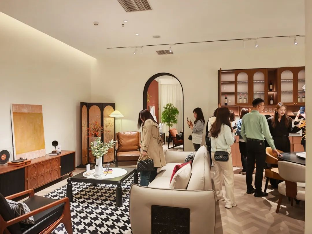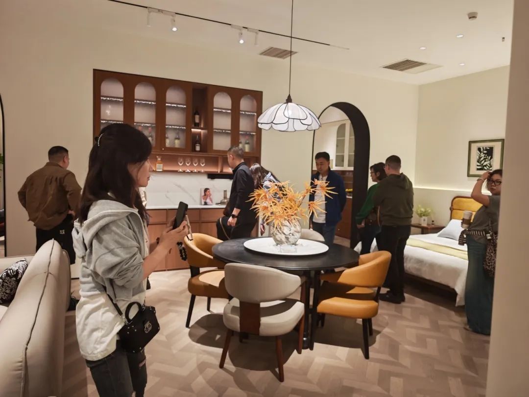 新品发布品鉴会现场,尊龙旗舰厅中古全案凭借独特的空间布局,创新的时尚设计,优质的材料细节以及精心的场景营造,吸引了全国优秀经销商及业界嘉宾们的目光,他们沉浸在高级的美学世界里,感受创新与品质交织的魅力。尊龙旗舰厅中古展厅里人潮涌动,众多经销商都对中古全案新品的创新设计称赞有加,现场签约不断,气氛热烈。