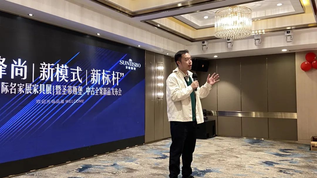 接下来,尊龙旗舰厅工业营销部副经理吴天喜先生为我们重磅揭晓了2025春季新品中古全案系列和新古典全案升级新品,他从选材、设计、风格、工艺等方面进行了全面的讲解,并提到此次中古新品的全案模式是以更具设计感的创新方式,给予消费者整体性的体验感升级,助力大家在激烈的市场竞争中,突显差异化的优势,实现业绩的飞跃式增长。